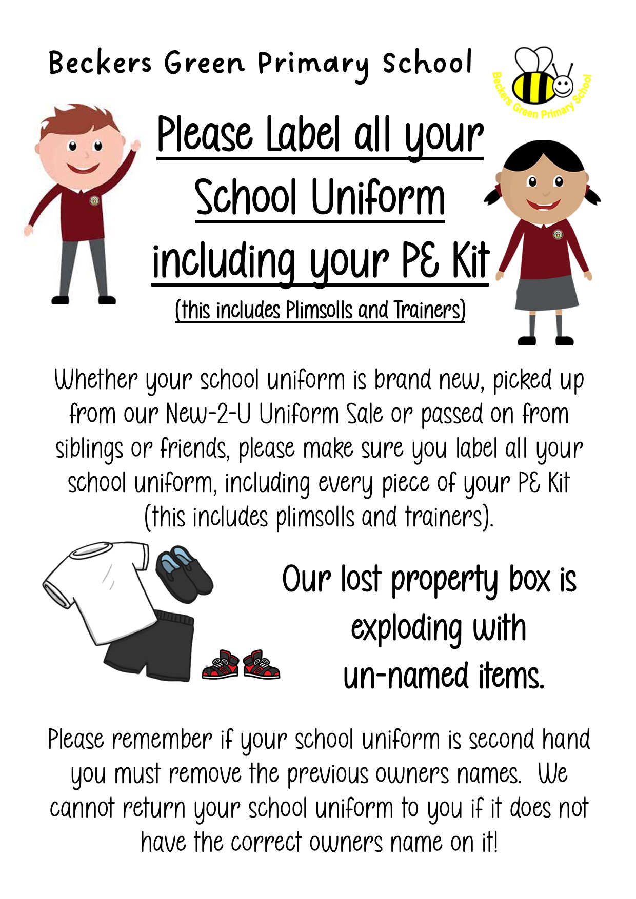 Please see the weblinks below to uniform providers or find all items in supermarkets. We strongly advise that you name all uniform items of clothing. As you can imagine, missing items without names are extremely difficult to find.