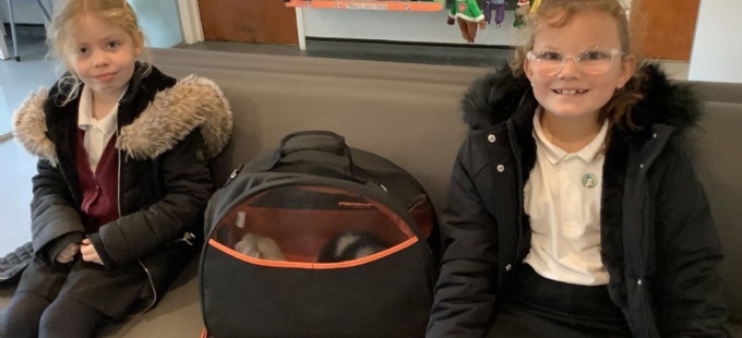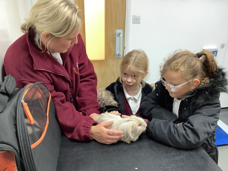 Ayla and Isabella joined the guinea pigs and helped to explain how we look after them in school and asked some questions to make sure we continue to keep them happy!