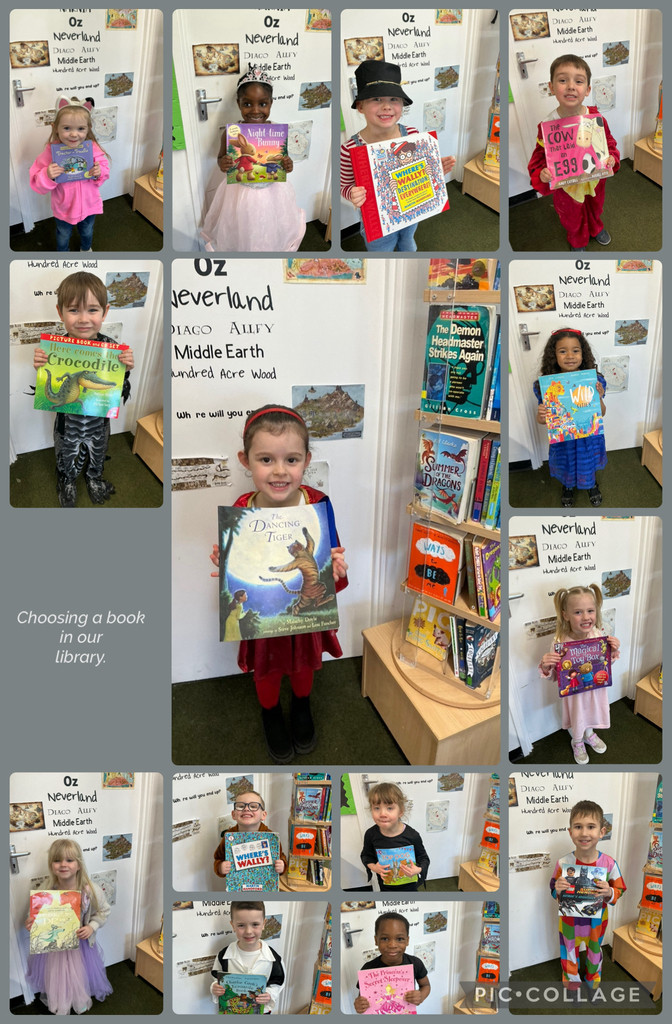 We also visited the library in our colour groups. We explored the shelves, chose books to take home and share, and we listened to another story together.