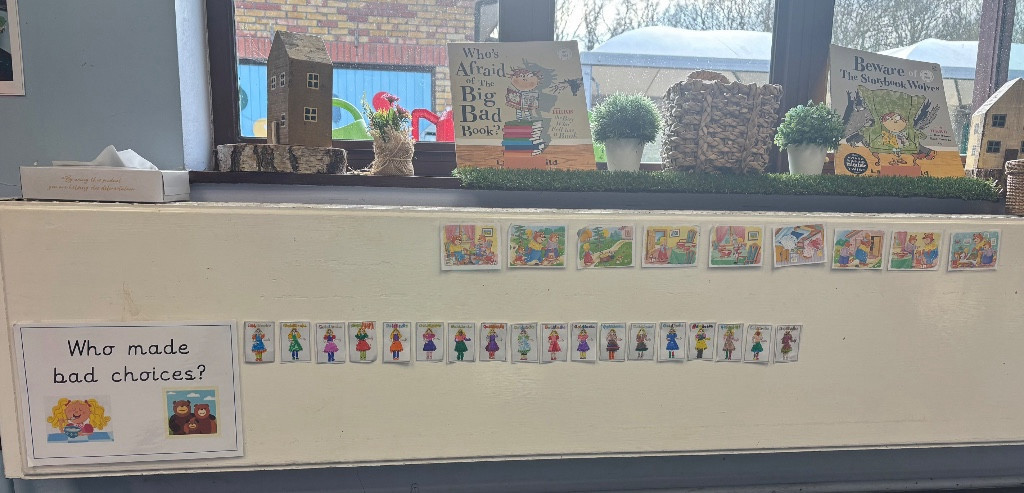 We talked about which characters in the story made bad choices and why. Then we voted for characters using our coloured pictures. Everyone agreed that Goldilocks had made bad choices.