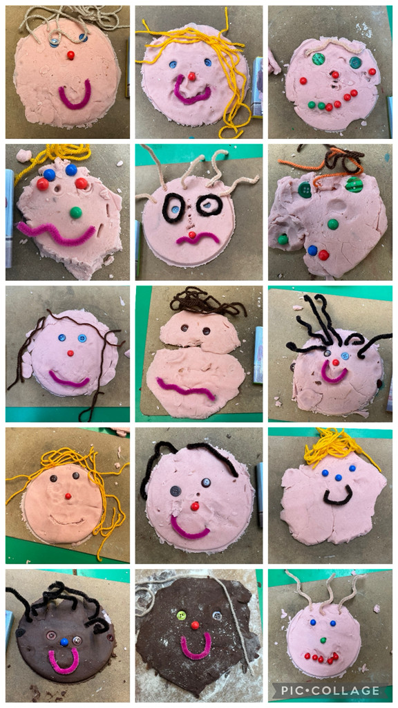 We started our topic with Wonderful Me and a wonderful gallery of self-portraits using different mediums - paint, playdough, transient art materials and 2D shapes.