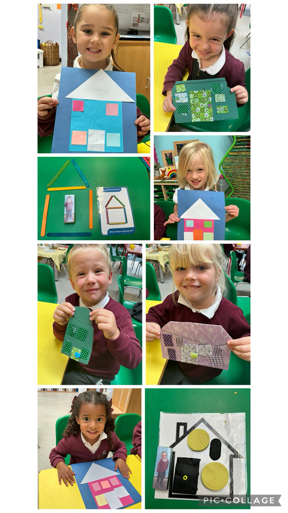 The Squash and a Squeeze story, written by Julia Donaldson, helped to theme our learning and experiences around My Home. We created homes from 2D shapes, lolly sticks, playdough, and painted and collaged patchwork cardboard homes. Our colourful homes make our classroom look bright and cheerful.