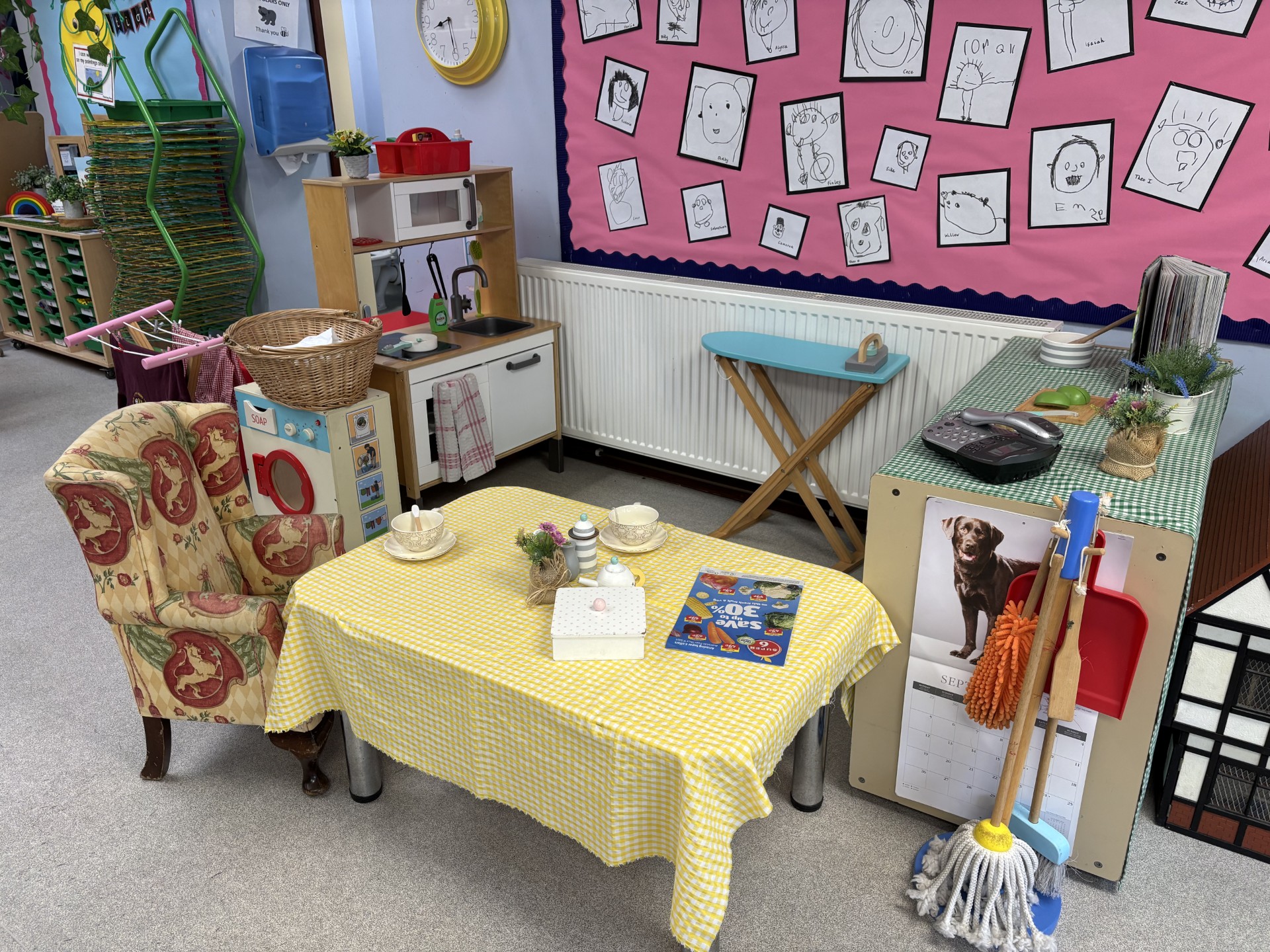 Our role play started as a home kitchen to engage the Bears in role-play activities, encouraging them to communicate and play with their new friends in a familiar setting. We have now extended our kitchen to include a laundry area. Top tip, parents, get the Bears to fold clothes. They are great at it!