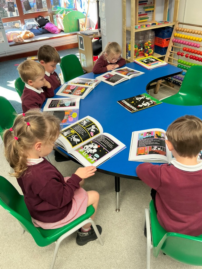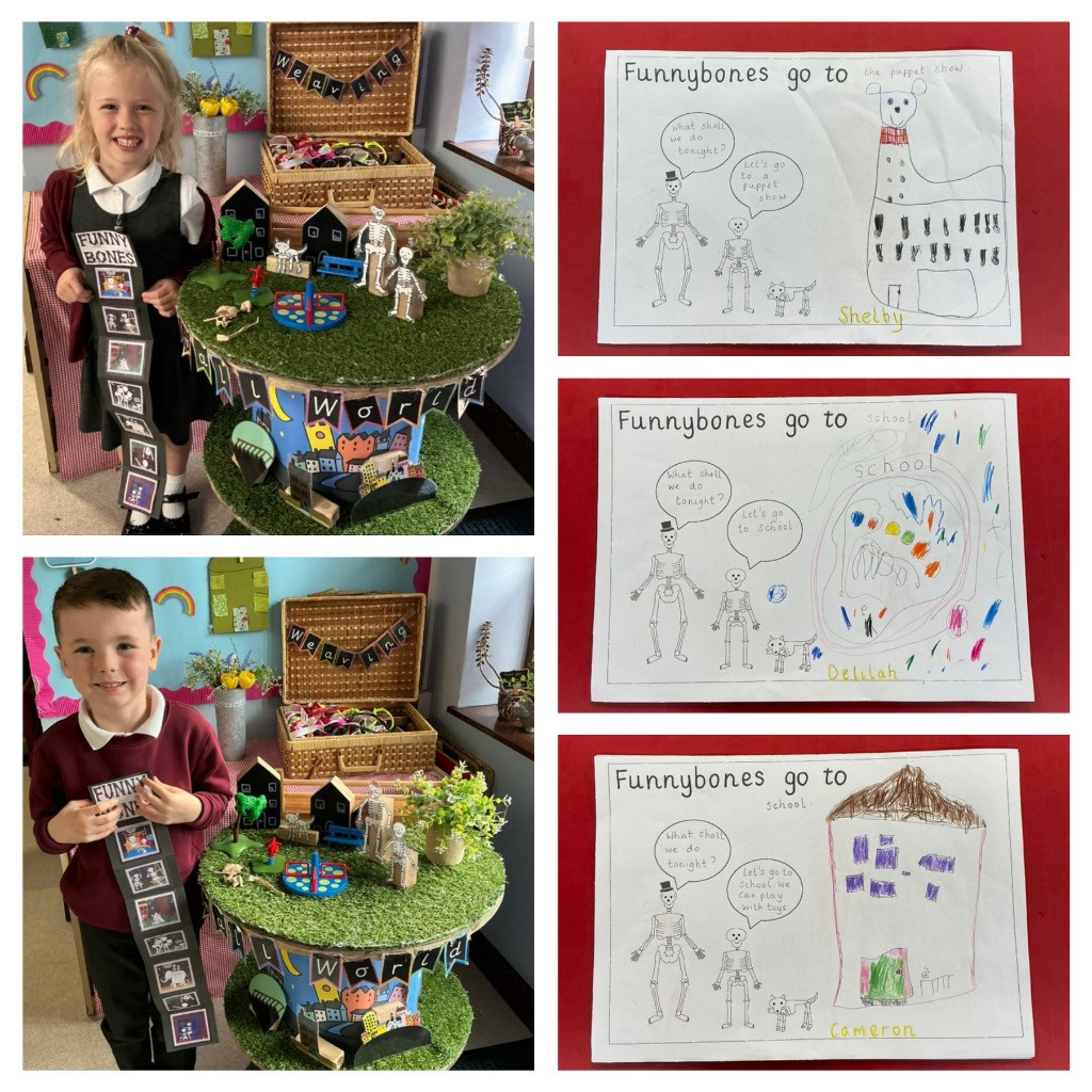 We have been learning about our bodies with the spooky and imaginative story FunnyBones, written by Janet and Allan Ahlberg. On small world, we used the skeleton characters to retell the story and, if we were brave enough, we added our mini-me characters into the dark, dark adventures too.
