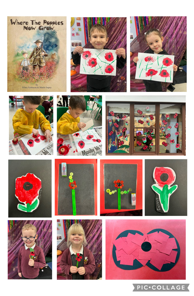 On Tuesday the 11th of November, we held the poppies we had made to observe a two-minute silence during a remembrance assembly. To help us understand why we do this, we watched the CBeebies Poppies animation and listened to the beautiful story Where the Poppies Now Grow. The children were quiet and respectful, and we were very proud of them. We painted and created poppies to display in our book corner windows and made loose part poppies with buttons, pompoms and coloured stones.