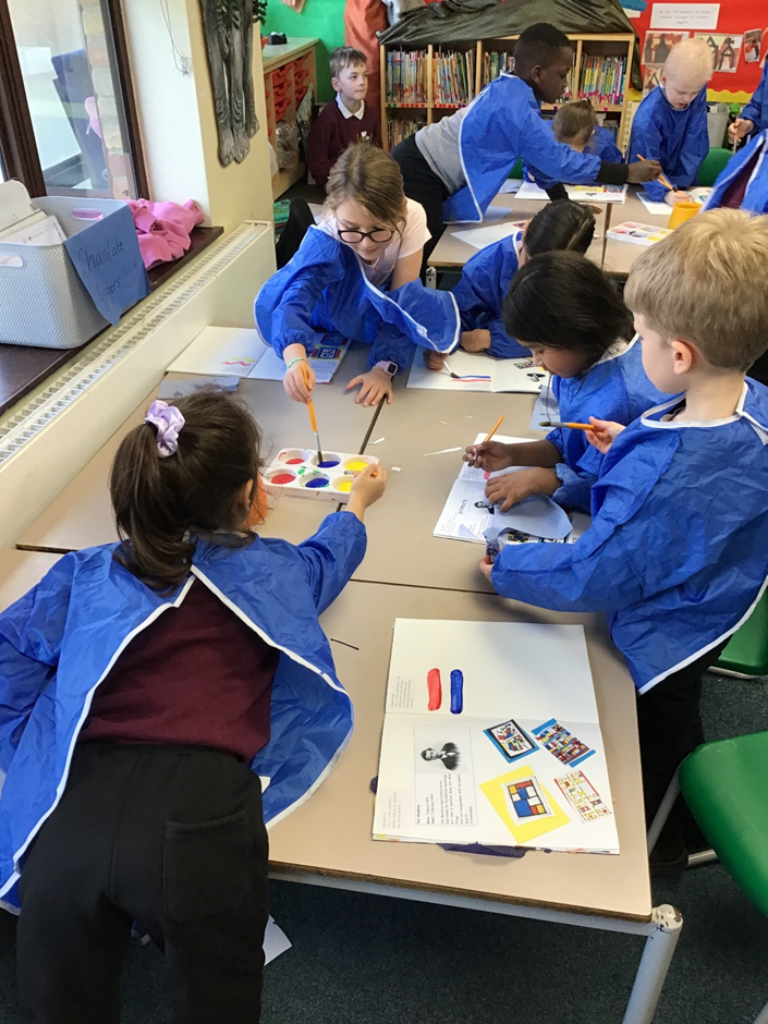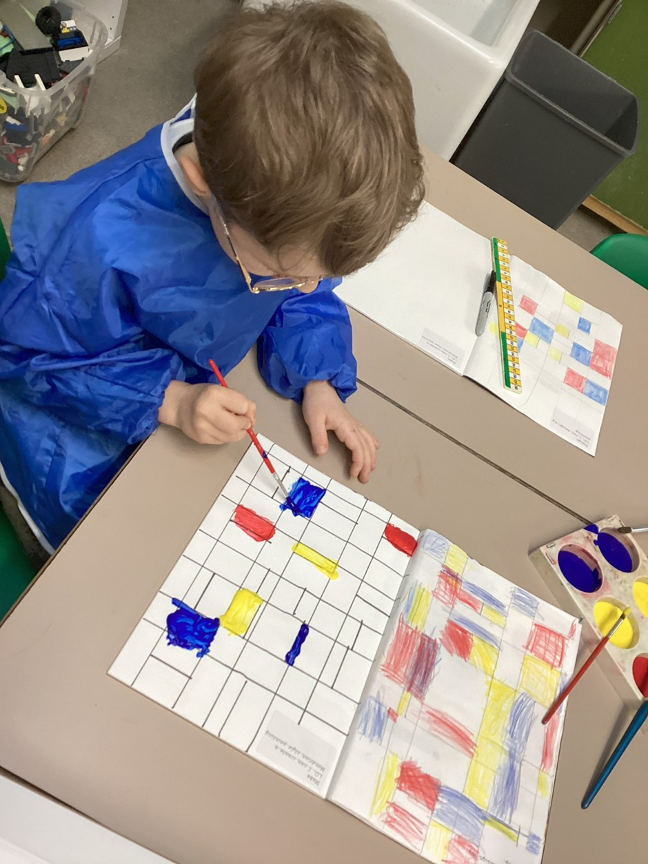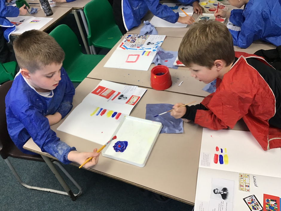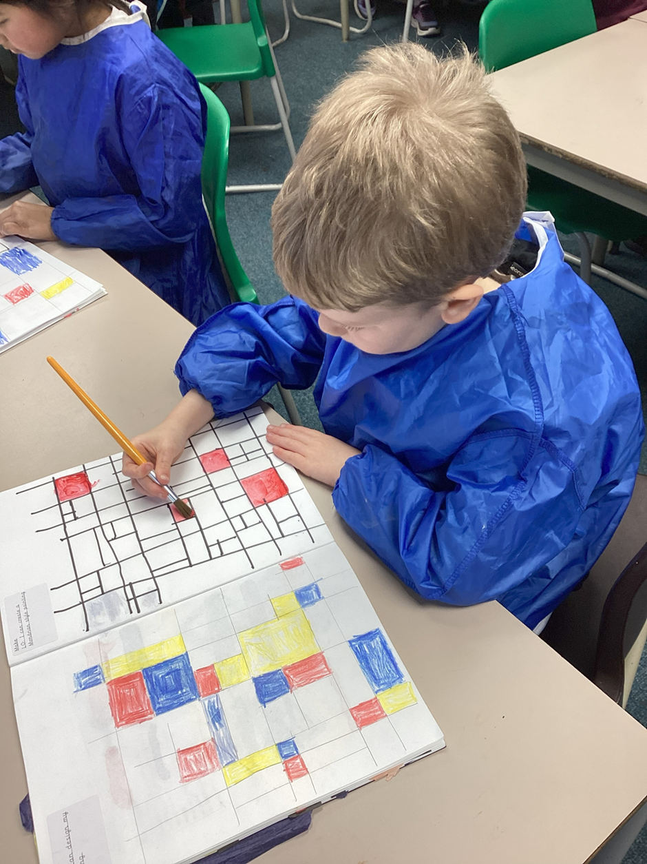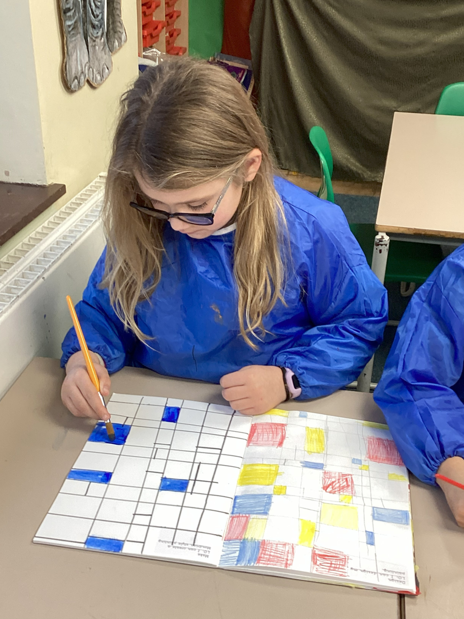 Finally, we used our designs to help us create our own Mondrian inspired art work, before evaluating, thinking about what went well and how we could change our work next time:
