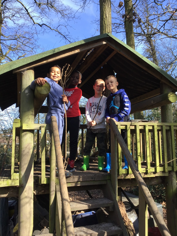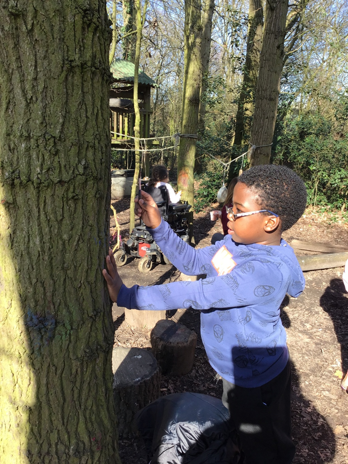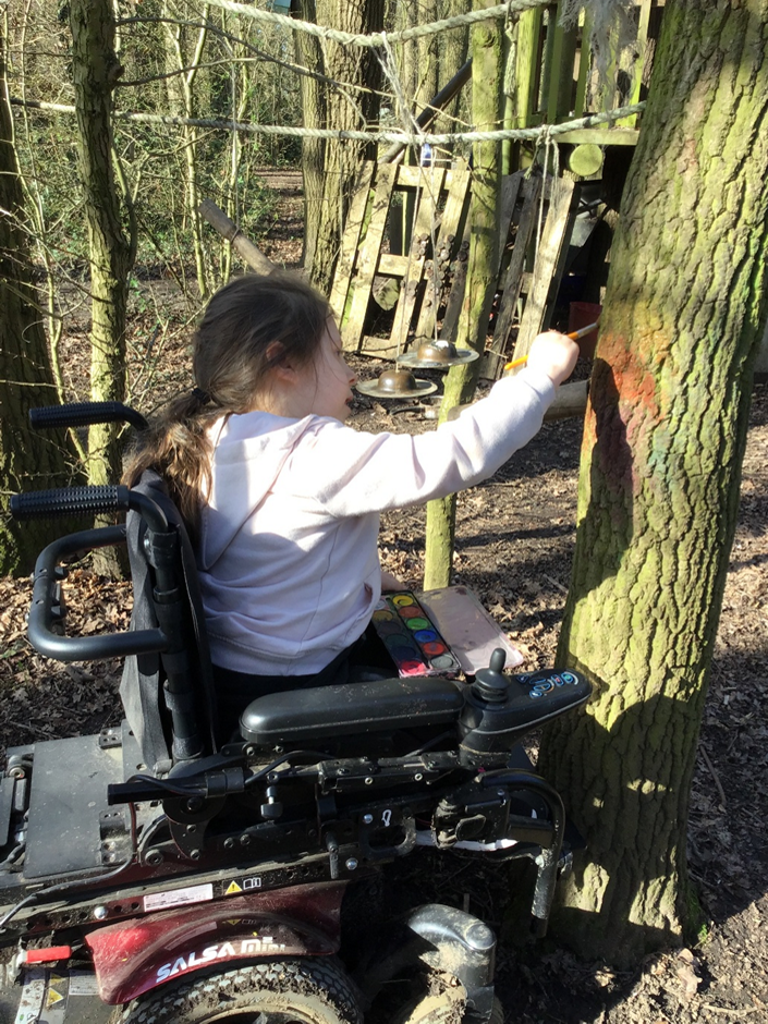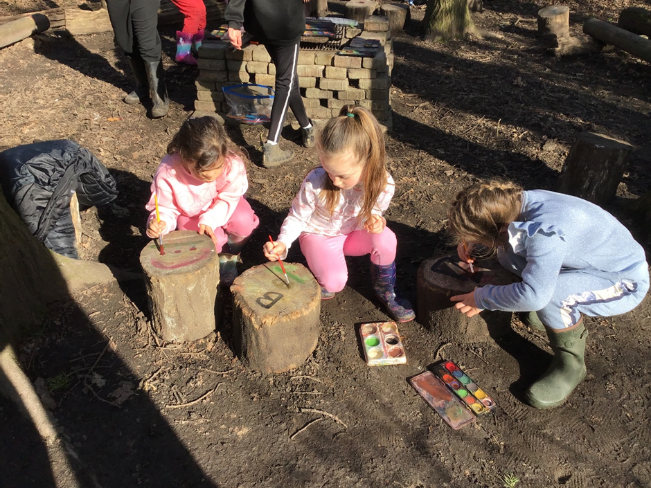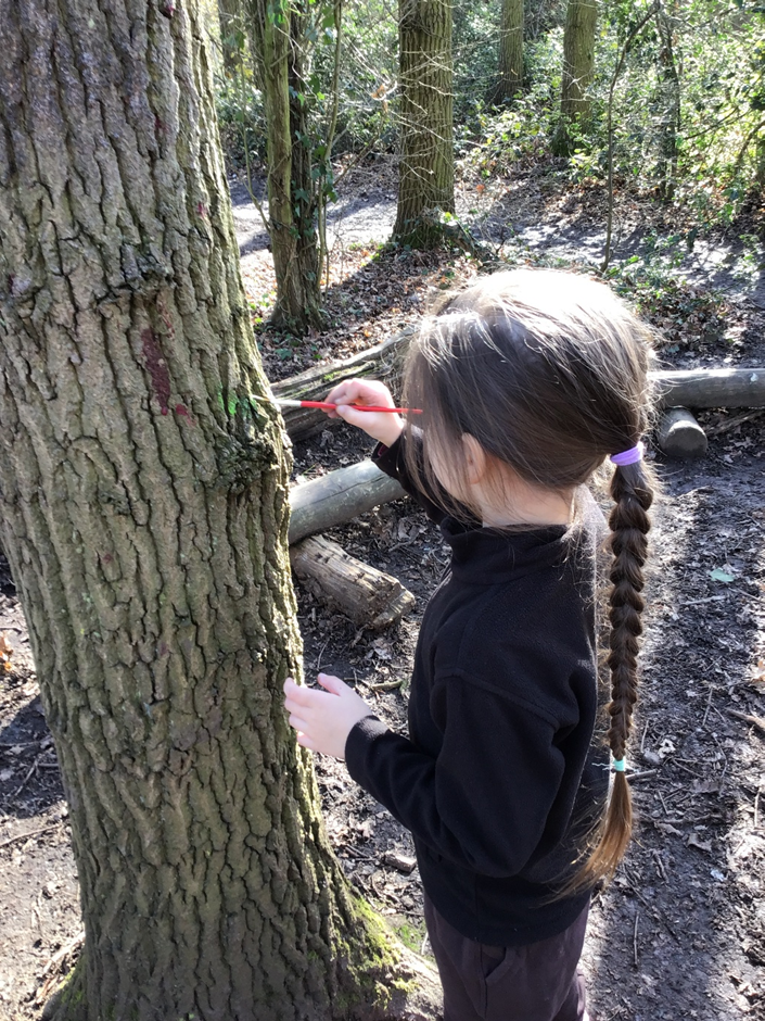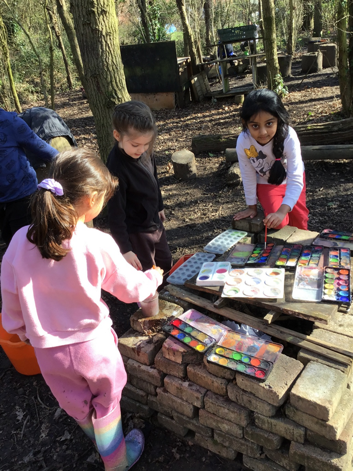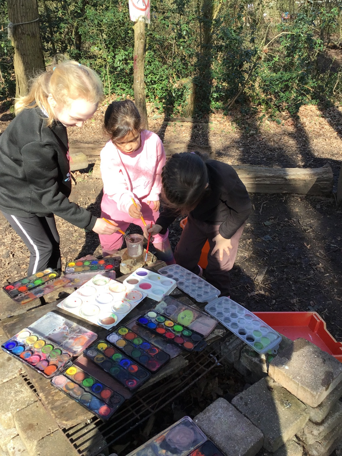 And making the most of the sunshine in our outdoor learning session, using watercolours to brighten up the copse!