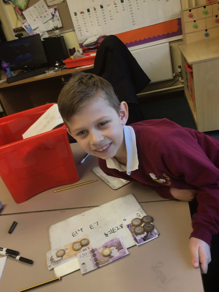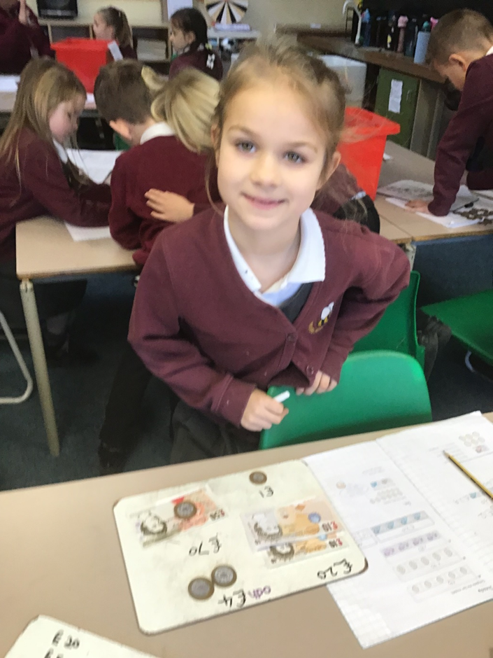 In maths we started our topic of money, looking at pounds and pence, coins and notes and using them to make amounts in Miss Hatchman's toy shop!