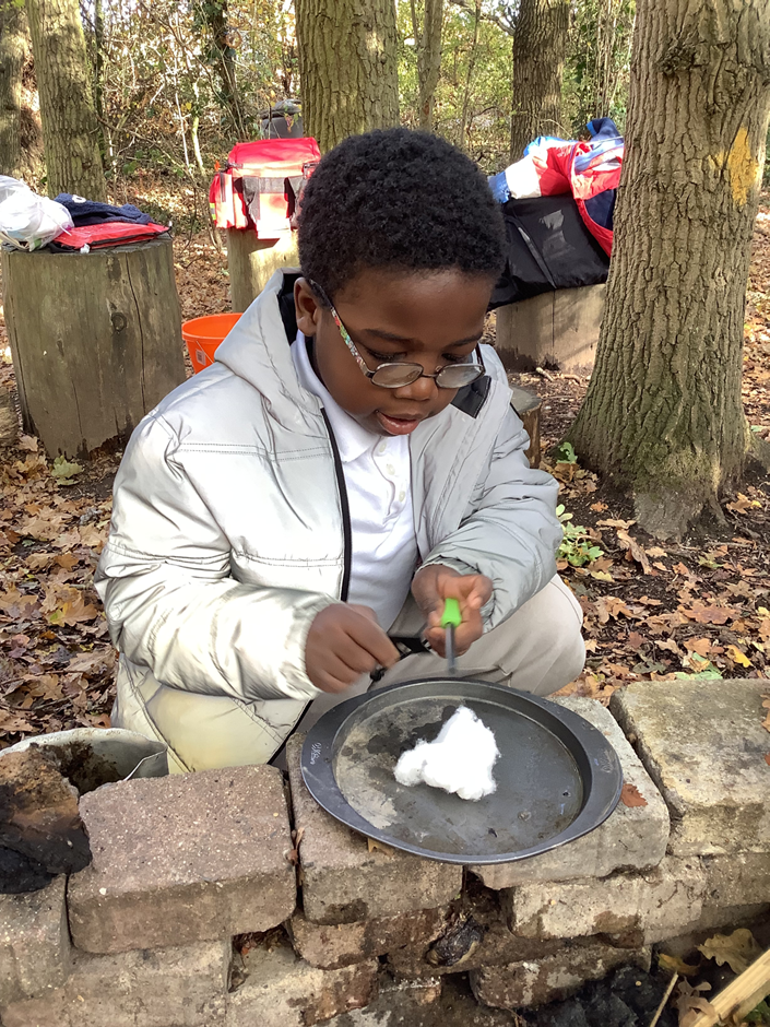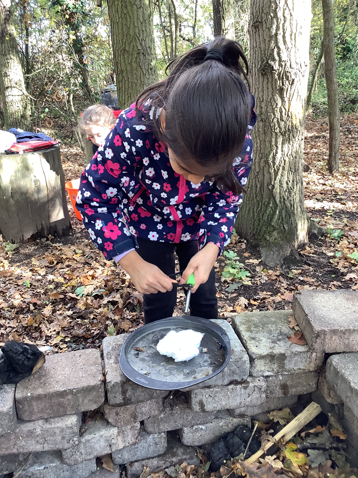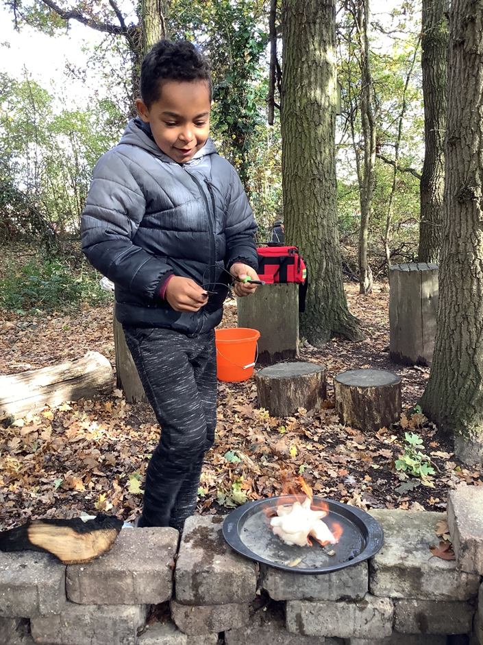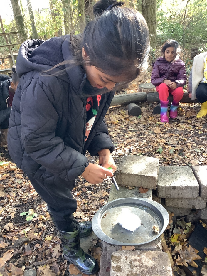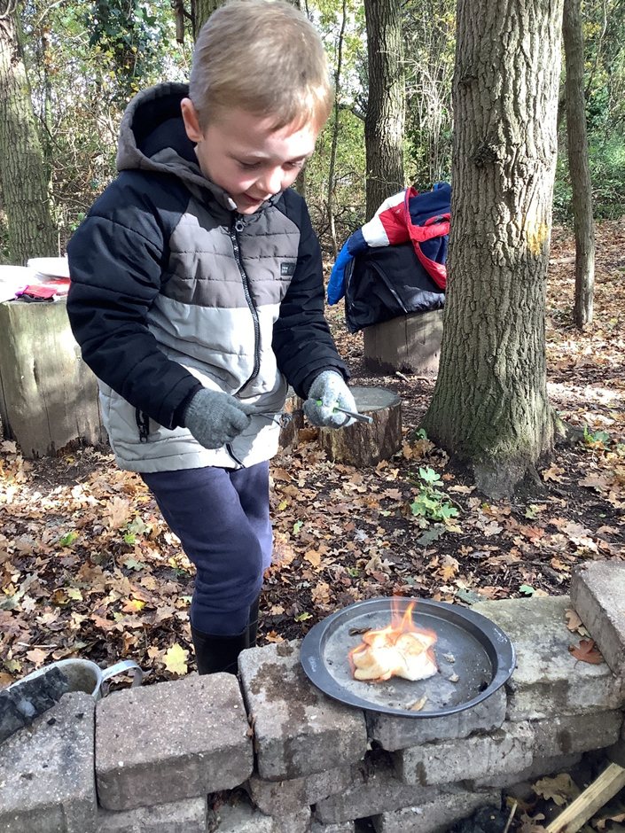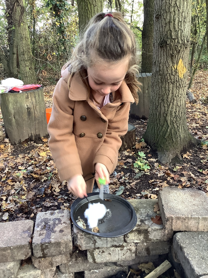 Risky play is an important part of developing resilience, risk assessing skills and physical skills, along with team work and happens naturally in the copse (under supervision of course!) Today the children had an invitation to learn how to use a flint and steel to light their own fires: