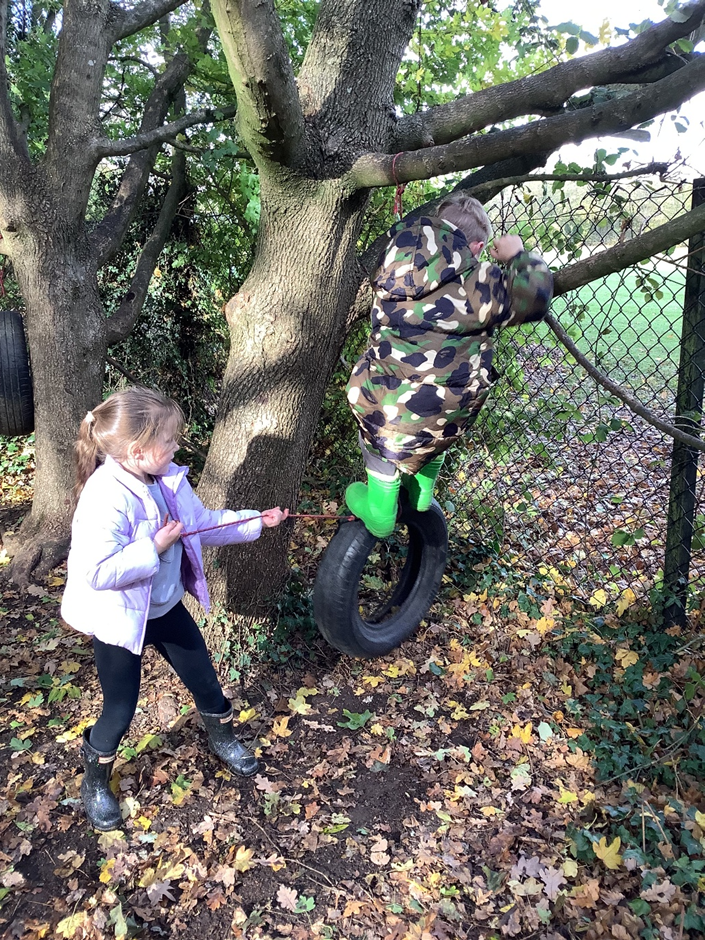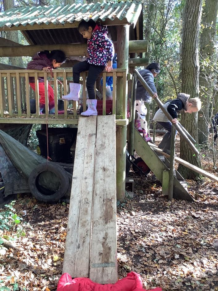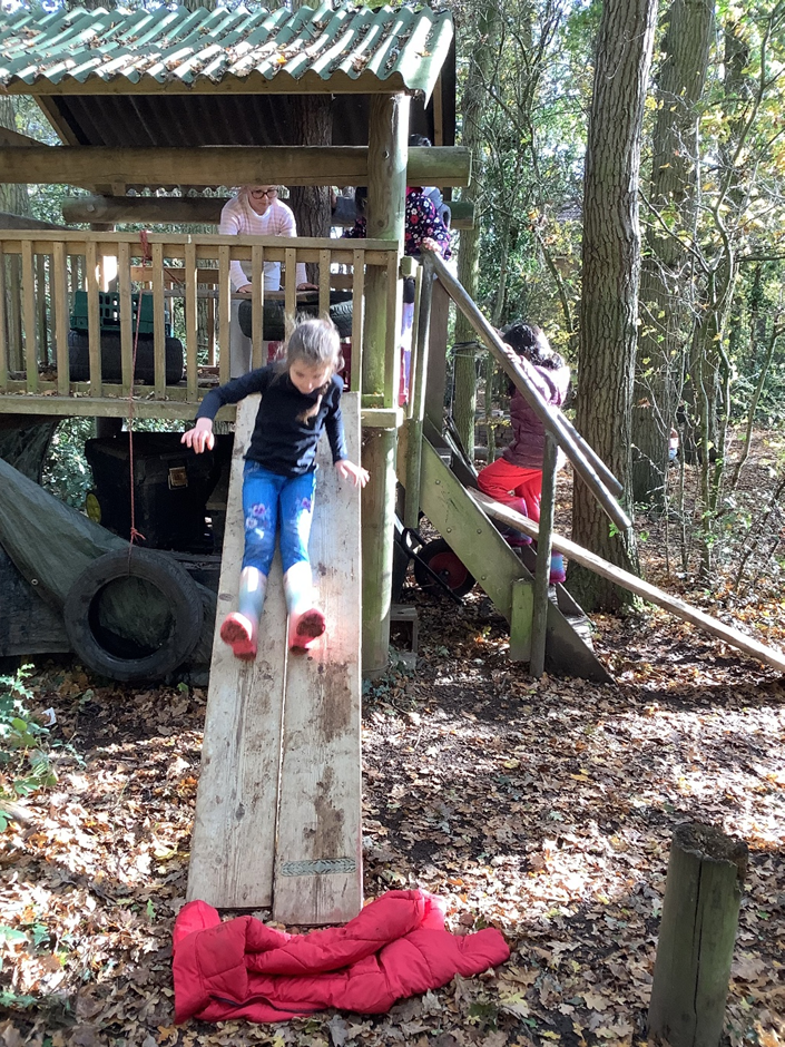 Some children were far too engaged in their play in the copse, devising their own playground with swings, slides and balance beams. Again risky play taking place but children were supported to risk assess - was it safe? Were the beams balanced and secure? What would happen if they weren't? How could they keep each other safe?