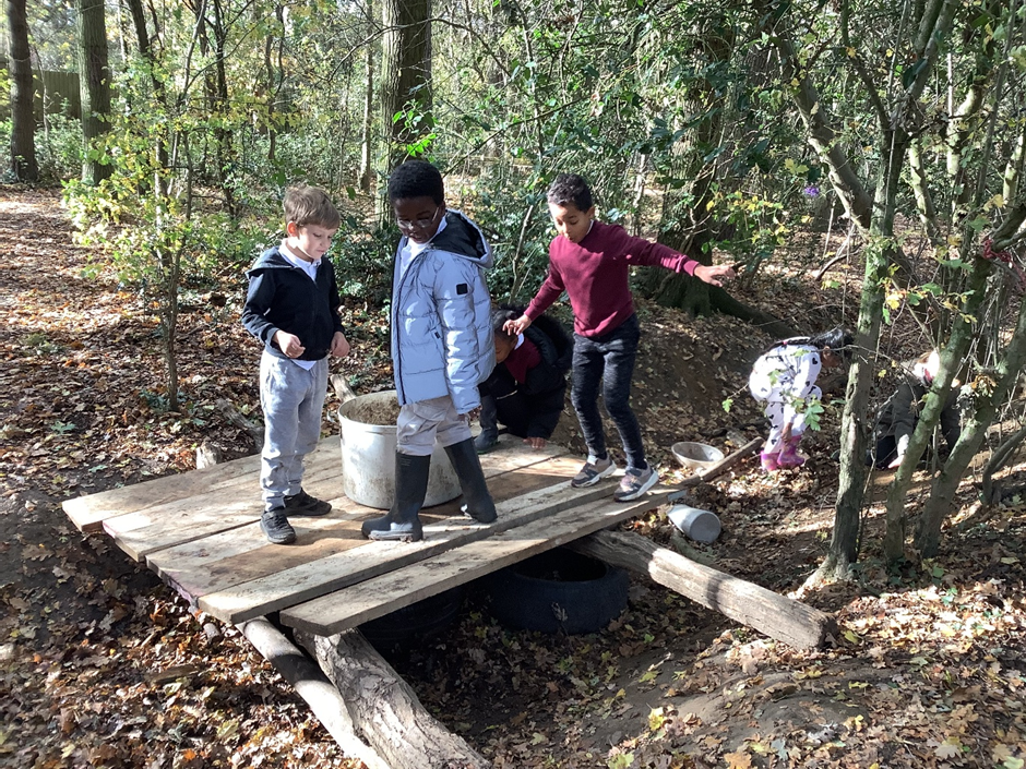 Others decided to make their own bridge across the ditch - using logs and planks - they worked to decide how high, how many planks and what level of risk could be added: