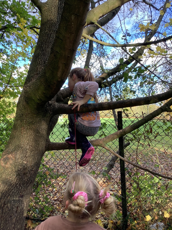 And finally... tree climbing! Being in charge of their own play, fun and risks also leads to children challenging themselves and succeeding! So many children in class are now tree climbing - their confidence as high as they are in the trees! (Again, the children are supervised and safe! They go as high as they feel safe and of course I am on hand to verbally guide children up and down and to risk assess with them as needed!)